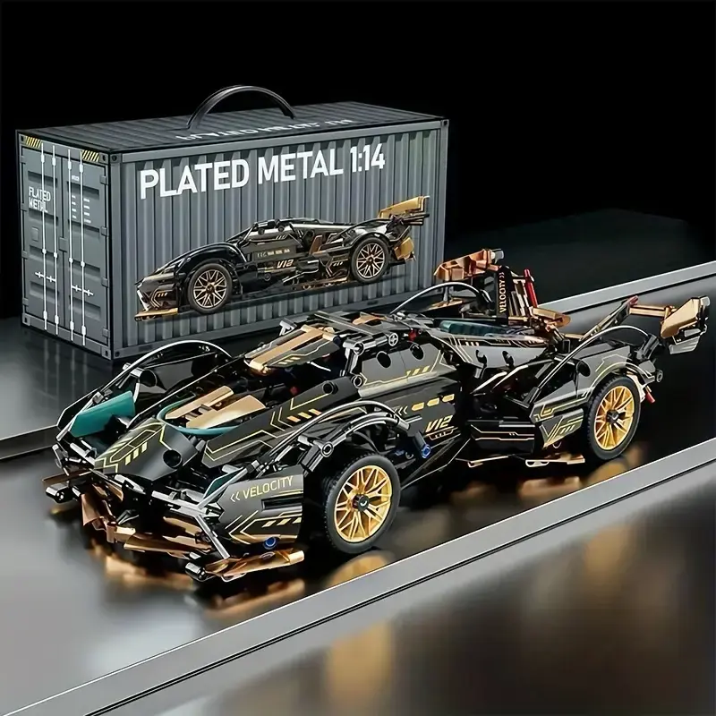 Car Building Blocks Toy, Cool Black And Golden Sports Car Assembly Set, Creative Car Insert, ABS Material, Perfect for Family/Friends/Birthdays And Holidays Gift
